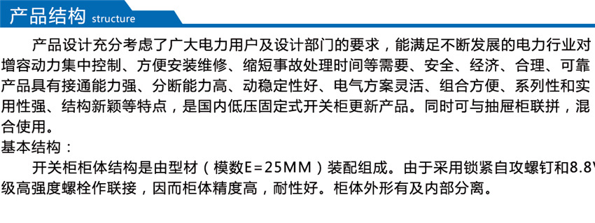 1. 柜體結構采用組裝式,斷路器采用手車落地式結構;