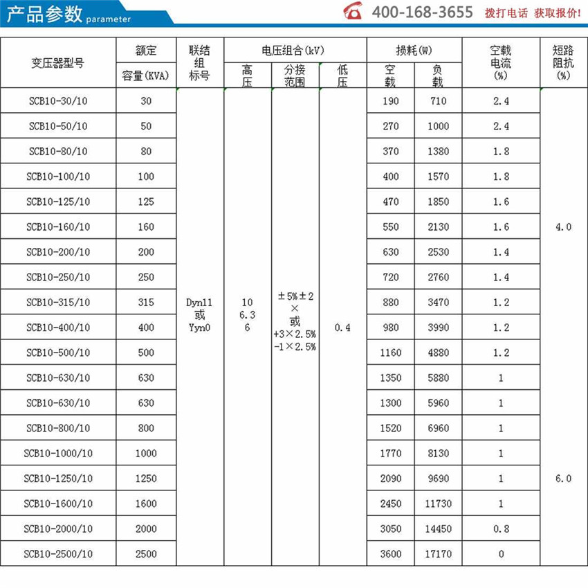 【額定容量】:50-2500kva      【額定電壓】:10kv